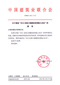 在2012(第3屆)置業(yè)中國/工程建設(shè)國際峰會上,中國建筑業(yè)聯(lián)合會為表彰先鋒、樹立榜樣,充分發(fā)揮優(yōu)秀施工企業(yè)在我國建設(shè)工程領(lǐng)域的導(dǎo)向作用,經(jīng)施工企業(yè)層層選拔推薦,最后由中國建筑業(yè)聯(lián)合會評審委員會審定:云南科海電子有限公司獲選“2012全國工程建設(shè)優(yōu)秀施工企業(yè)”。