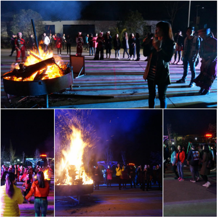 明月初上,湯副總點燃的篝火拉開了篝火晚會的序幕,伴隨著歡快的音樂,大家跟著彝族阿詩瑪們跳起了歡樂的民族舞蹈。伴著篝火熊熊燃燒,大伙盡情展示著科海巾幗的風采,久久地回蕩在每個參與者的夢境中……