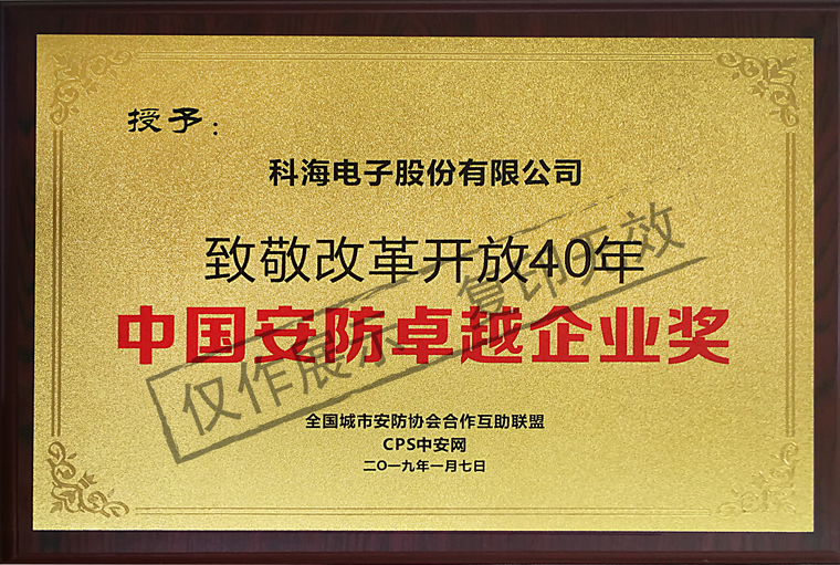 中國安防卓越企業獎